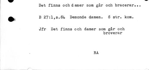 //// Det finns och damer som gar och bracerar... //// - //// * //// ^^ B 27:1,s.34 Demonde damen. 3 str. kom. //// Jfr Det finns och damer som går och //// broverar //// . //// RÅ //// ! . //// / t ////