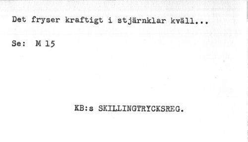 //// Det fryser kraftigt i stjärnklar kväll... //// Se: M 15 //// ] //// KB:s SKILLINGTRYCKSREG. //// i //// ' //// C //// i //// ! //// t ////