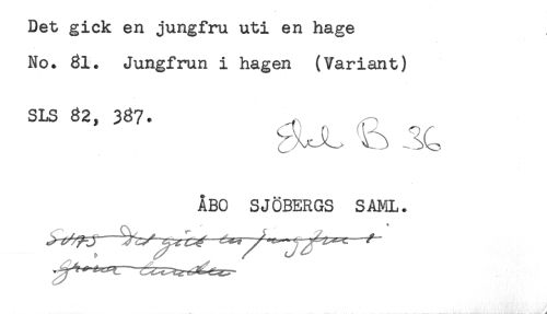 //// Det gick en jungfru uti en hage //// No. 31. Jungfrun i hagen (Variant) //// SLS 82, 387. //// ÅBO SJÖBERGS SAML. //// ..... . ,* j" ////