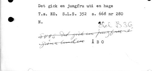 //// Det gick en jungfru uti en hage //// T.s. KO. S.L.S. 352 s. 668 nr 280 //// ^ N. Ar Yl r- " //// Ä B 0 ////