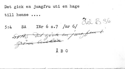 //// Det gick en jungfru uti en hage //// till henne .... //// 5:4 SA INr 6 s.7 /nr 6 //// /ÅBO ////