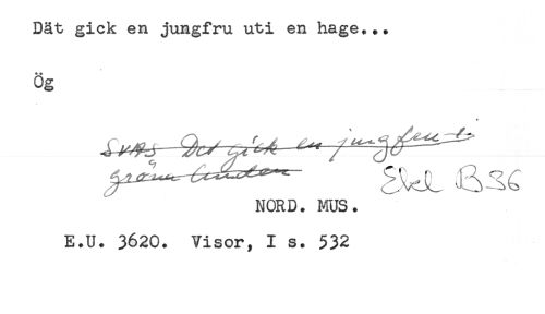 //// ++ //// og //// NORD. MUS. //// E.U. 3620. Visor, I s. 532 ////