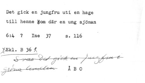 //// Det gick en jungfru uti en hage //// till henne gom där en ung sjöman //// 6:4 ? Ine 37 s. 116 //// ^Ekl. B 36 ^ ////