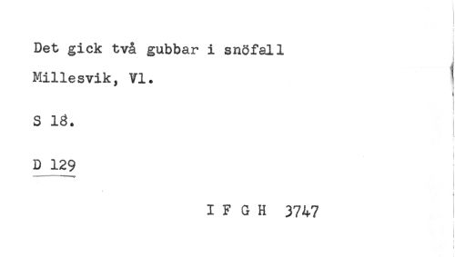 //// Det gick två gubbar i snöfall //// Millesvik, VI. ) //// i //// ) //// ! //// s //// S 13. //// D 129 //// "" " *' //// I F G H 3747 ////