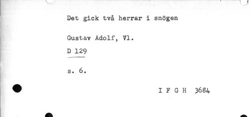 //// Det gick två herrar i snögen //// HBal*''.,-' //// ( //// # //// t //// Gustav Adolf, VI. //// i //// D 129 //// s. 6. //// # I F G H 3684 //// & ////