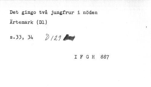 //// Det gingo två jungfrur i nöden //// Ärtemark (Dl) //// t //// s-33, 34 //// I F G H 887 ////
