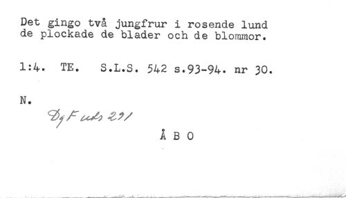 //// Det gingo två jungfrur i rosende lund //// de plockade de blader och de blommor. //// 1:4. TE. S.L.S. 542 s.93-94. nr 30. //// N. //// ÅBO //// \ < . .. ___ ^____ ___-_____--_____ ....____-..--------------_..-- -... ----' ------------- ------- ////