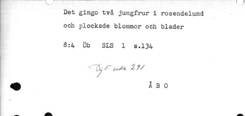 //// Det gingo två jungfrur i rosendelund //// och plockade blommor och blader //// 8:4 Öb SLS 1 s.134 ////