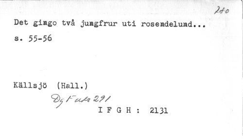 //// Det giago två juBgfrur uti rosendelund... //// s. 55-56 //// t //// i //// < //// Källsjö (Hall.) //// I F G H : 2131 ////