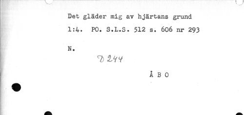 //// Det gläder mig av hjärtans grund //// 1:4. PO. S.L.S. 512 s. 606 nr 293 //// N* //// I T) i / v //// ÅBO ////