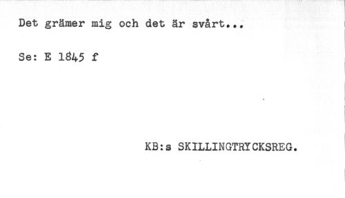 //// Det grämer mig och det är svårt... //// Se: E 1845 f //// . //// W //// KB:s SKILLINGTRYCKSREG. ////