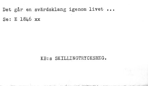 //// Det går en svärdsklang igenom livet ... //// Se: E 1846 xx //// KB:s SKILLINGTRYCKSREG. ////