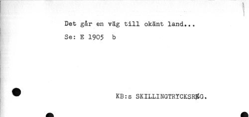 //// Det går en väg till okänt land... //// Se: E 1905 b //// * //// HYt'- //// ^ KB:s SKILLINGTRYCKSR%G. ////