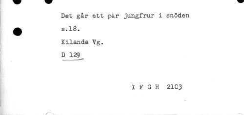 //// Det går ett par jungfrur i snöden //// ^ s.13. //// Kilanda Vg. //// ti //// D 129 //// - //// ! //// I F G H 2103 //// t ////