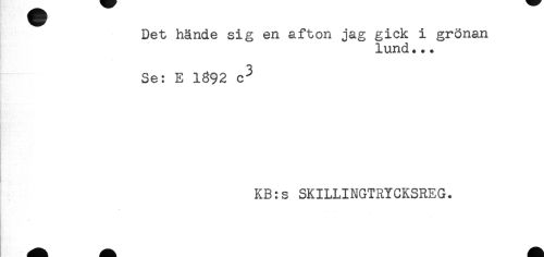 //// Det hände sig en afton jag gick i grönan //// lund... //// < //// Se: E 1892 c^ //// KB:s SKILLINGTRYCKSREG. ////