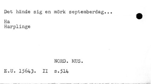 //// Det hände sig en mörk septemberdag... ^ //// Ha //// Harplinge //// NORD. MUS. //// E.U. 15643. II s.514 ////