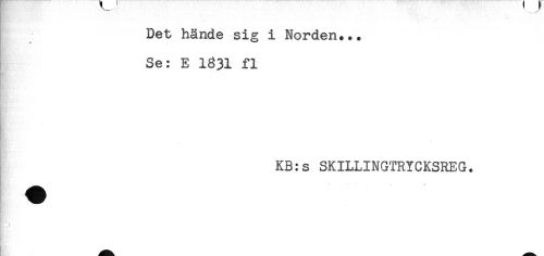 //// Det hände sig i Norden... //// Se: E 1831 fl //// HR' //// * //// - //// KB:s SKILLINGTRYCKSREG. //// C. ,' tfi* //// B' ////