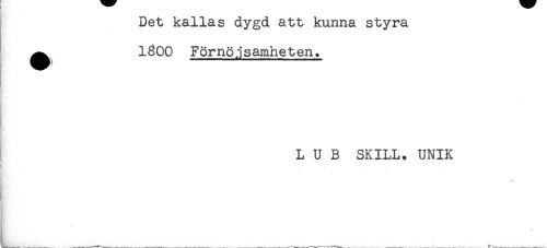 //// Det kallas dygd att kunna styra //// ^ 1300 Förnöjsamheten. //// L U B SKILL. UNIK //// ! //// ^ ////