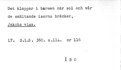 //// Det klappar i barmen när sol och vår //// de smältande isarna bräcker, //// Jakobs visa. //// LT. S.L.S. 360. s.ll4. nr 116 //// r //// * //// L //// C //// f ////