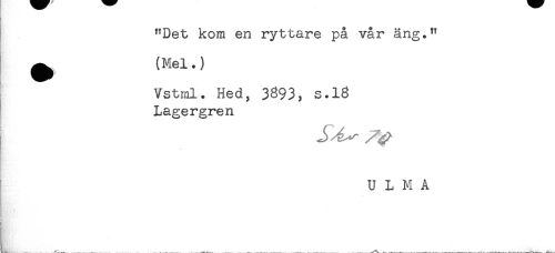 //// "Det kom en ryttare på vår äng." //// ) //// ^ (Mel.) //// Vstml. Hed, 3^93, s.16 //// Lagergren //// U L M A //// \ ////