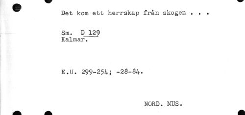 //// Det kom ett herrskap från skogen . . . //// Sm. D129 //// Kalmar. //// E.U. 299-254; -23-34. //// NORD. MUS. ////