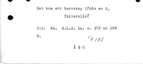 //// Det kom ett herrskap ifrån en ö, //// ^ fallerallaf //// 3:2. NA. S.L.S. 24. s. 372 nr 193 //// N. //// ÅBO ////