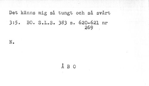 //// Det känns mig så tungt och så svårt //// 3:5. BO. S.L.S. 333 s. 620-621 nr //// 269 //// N. //// ÅBO //// -v ////