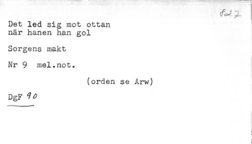 //// Det led sig mot ottan //// när hanen han gol //// Sorgens makt //// Nr 9 mel.not. //// (orden se Arw) //// * //// DgF //// i ////