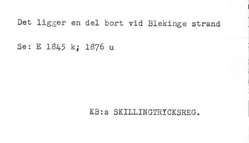 //// < //// Det ligger en del bort vid Blekinge strand //// *! //// Se: E 1845 k; 1876 u //// < //// ! //// KB:s SKILLINGTRYCKSREG. ////