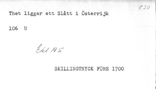 //// Thet ligger ett Slått i Österrijk //// 106 U //// t //// i //// SKILLINGTRYCK FÖRE 1700 //// i //// ! ////