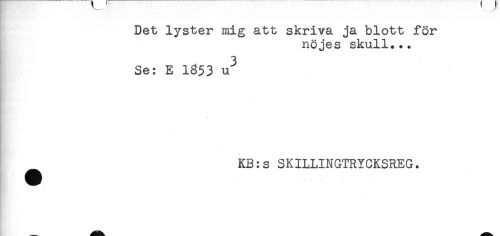 //// Det lyster mig att skriva ja blott för //// nöjes skull... //// 3 //// Se: E 1353 u //// * //// ^ KB:s SKILLINGTRYCKSREG. ////