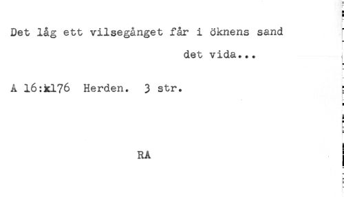 //// Det låg ett vilsegånget får i öknens sand //// det vida... //// H //// Å I6:kl76 Herden. 3 str. } //// H //// RA j //// - ////