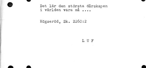 //// * Det lär den största dårskapen //// i världen vara må .... //// Högseröd, Sk. 2260:2 //// ! L U F ////