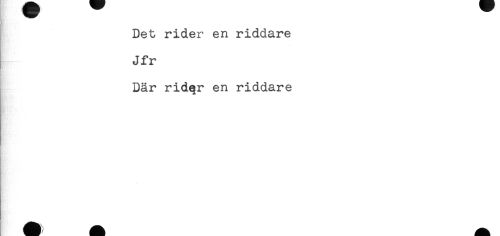 //// Det rider en riddare //// Jfr //// Där ridqr en riddare //// (] W il! ^ ////