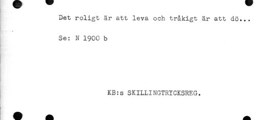 //// Det roligt är att leva och tråkigt är att dö... //// Se: N 1900 b //// KB:s SKILLINGTRYCKSREG. ////