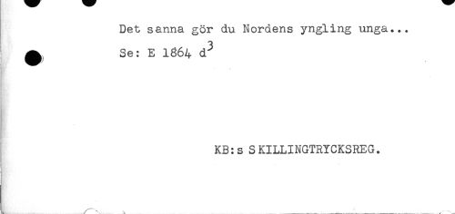 //// Det sanna gör du Nordens yngling unga... //// ^ Se: E 1864 d^ //// A //// KB:s SKILLINGTRYCKSREG. //// / . \ ___-. ...__ - ..... ^ ___^ ////