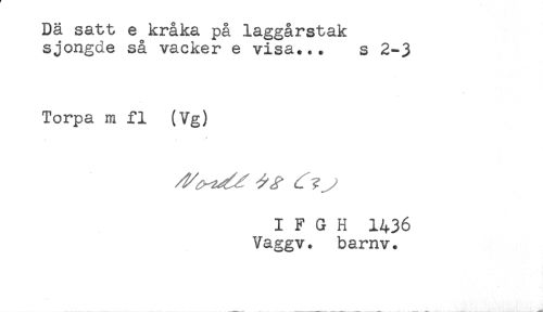 //// Dä satt e kråka på laggårstak //// sjöngde så vacker e visa... s 2-3 //// Torpa m fl (Vg) //// I F G H 1436 //// Vaggv. barnv. //// _ -... - . j-i? ////