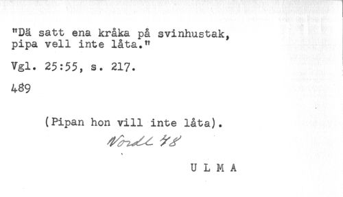 //// - //// "Dä satt ena kråka på svinhustak, //// pipa vell inte låta." //// Vgl. 25:55, s. 217. //// 439 //// (Pipan hon vill inte låta). //// U L M A ////