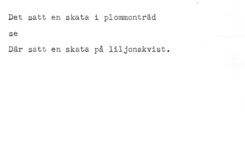 //// Det satt en skata i plommonträd //// se //// Där satt en skata på liljonakvist. ////
