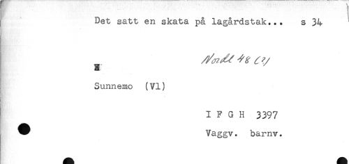 //// I Det satt en skata på lagårdstak... s 34 //// v ' //// - //// - //// * //// B //// Sunnemo (VI) //// - //// } //// & //// I I F G H 3397 //// ^ Vaggv. barnv. ////