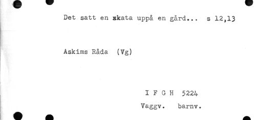 //// Det satt en xkata uppå en gård... s 12,13 //// Askims Råda (Vg) //// I F G H 5224 //// Vaggv. barnv. ////
