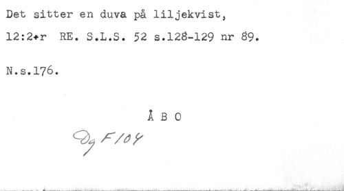 //// Det sitter en duva pa liljekvist, //// 12:2+r RE. S.L.S. 52 s.128-129 nr 89. //// N.s.176. //// ÅBO ////