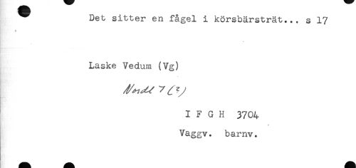 //// ^ Det sitter en fågel i körsbärsträt... s 17 //// $ //// * //// Laske Vedum (Vg) //// I F G H 3704 //// Vaggv. bamv. ////