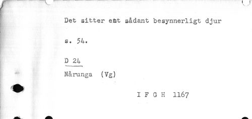 //// f //// t //// Det sitter eht sådant besynnerligt djur //// L.i..'.-;'. i. .-..i,.- .... //// s. 54. //// D 24 //// Nårunga (Vg) //// I F G H 1167 ////