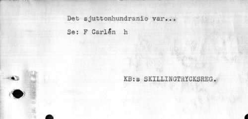 //// Det sjuttonhundranio var... //// Se: F Carlén h //// . //// : //// KB:s SKILLINGTRYCKSREG. //// . 'nar. //// . //// . ////