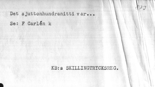//// Det sjuttonhundranittivar... //// Se: F Carlén k ^ //// HM'. //// H! //// t //// - //// t ' . //// .f,:-" ' y: " 'ål 1 //// V ^ //// KB:s SKILLINGTRICKSREG. //// *. K t * //// s'* ."-',*"- . ' .* ^ ,. .... \ '. ''-. //// '' ////
