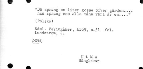 //// "Dä sprang en liten gosse öfver gården.... //// han sprang som alla tåna vari åv en...." //// (Polska) //// Sdml. VöVingåker, 4165, s.51 fol. //// Lundström, J. //// 5g ////