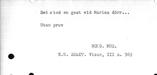 //// Det stod en gast vid Marias dörr... //// Utan prov //// 3 //// !, //// t //// NCRD. MUS. //// ^ E.U. 20407. Visor, III s. 965 ////