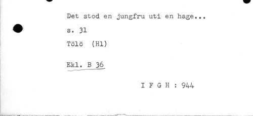 //// Det stod en jungfru uti en hage... //// Tölö (Hl) //// t //// t //// Ekl. B 36 //// I F G H : 944 //// t. < ////