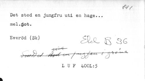 //// Det stod en jungfru uti en hage... //// : //// : //// mel.#ot. //// Everöd (Sk) n //// ^ ^ I* " ^ //// L U F 400L:5 ////